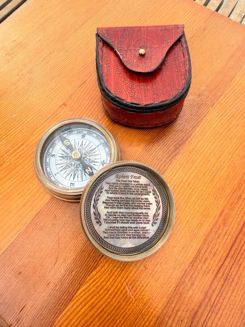 Vintage Brass Compass with Robert Frost Poem – Inspirational Gift for Graduation, .Retirement, or Travel Enthusiasts.