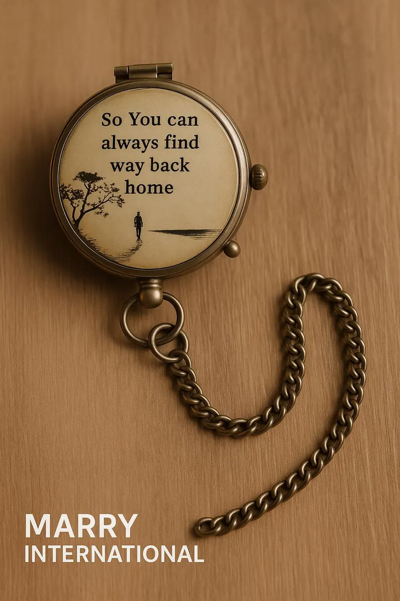 Vintage Style Compass – Meaningful Gift for Men | “Find Your Way Home” Quote Compass with Chain